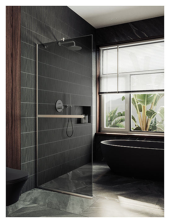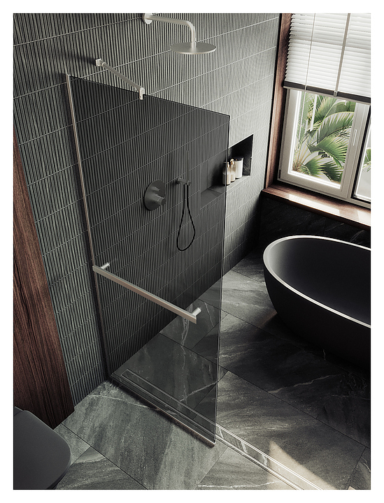 Перегородка душевая с полотенцедержателем MaybahGlass MGD-729-5у 79х195 см, графит, хром матовый