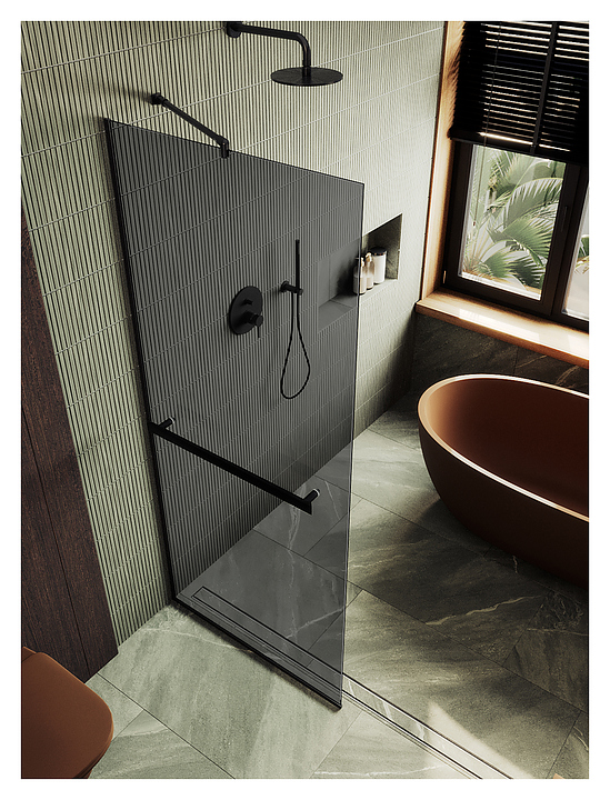 Перегородка душевая с полотенцедержателем MaybahGlass MGD-729-6у 79х195 см, графит, черный