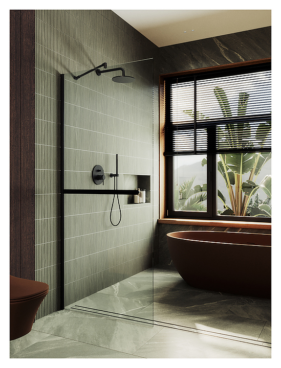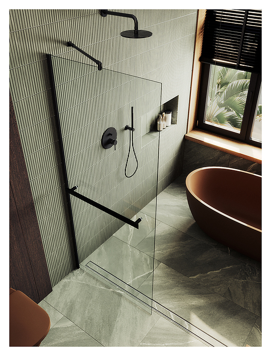 Перегородка душевая с полотенцедержателем MaybahGlass MGD-726-6ш 79х195 см, черный