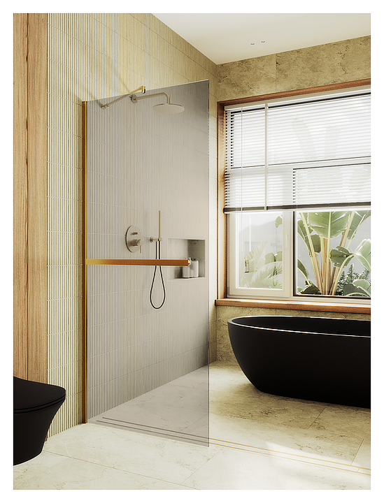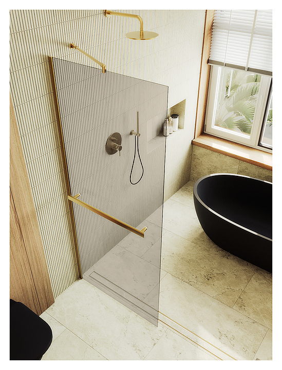 Перегородка душевая с полотенцедержателем MaybahGlass MGD-727-3ш 79х195 см, бронза, золото
