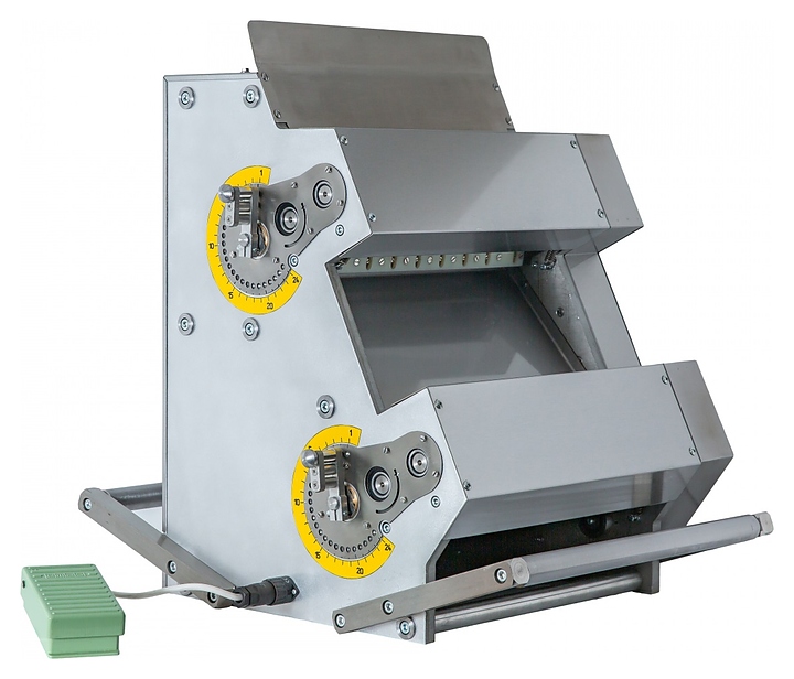 Настольная полуавтоматическая тестораскаточная машина Robolabs RoboRoller ТРМ2 используется в пекарнях, кондитерских, на других предприятиях пищевой промышленности, общественного питания и торговли для механизации раскатки плотного теста для производства пельменей, чебреков и аналогичных изделий с получением равномерно раскатанного пласта необходимой толщины. Модель оснащена 2 парами раскаточных валков с нереверсивным электроприводом и электромеханическим управлением. Особенности: