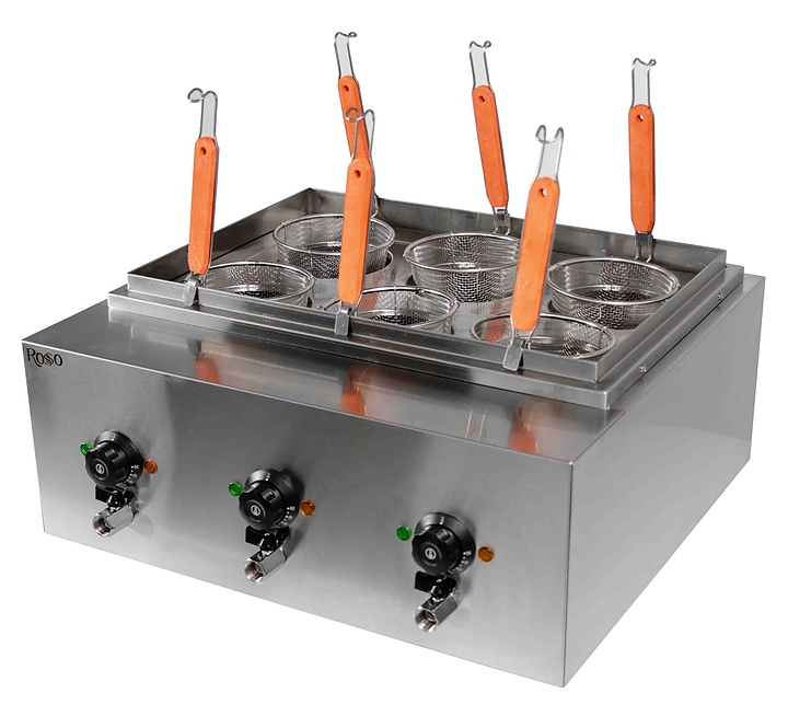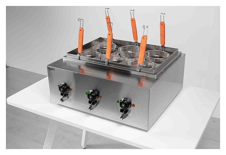 Макароноварка Rosso HEN-6A используется на предприятиях общественного питания и торговли для варки пельменей, вареников, макаронных изделий, кукурузы, фрикаделек и овощей. Заполнение аппарата водой производится вручную. Внутри аппарат разделен на секции, что предотвращает смешивание вкусов во время приготовления блюд. Корпус выполнен из нержавеющей стали. В комплект поставки входят сетчатые корзины. Внимание! Информация о товарах, размещенная на сайте, не является публичной офертой, определяемой положениями Части 2 Статьи 437 Гражданского кодекса Российской Федерации. Производители вправе вносить изменения в технические характеристики, внешний вид и комплектацию товаров без предварительного уведомления. Уточняйте характеристики у наших менеджеров перед оформлением заказа. |