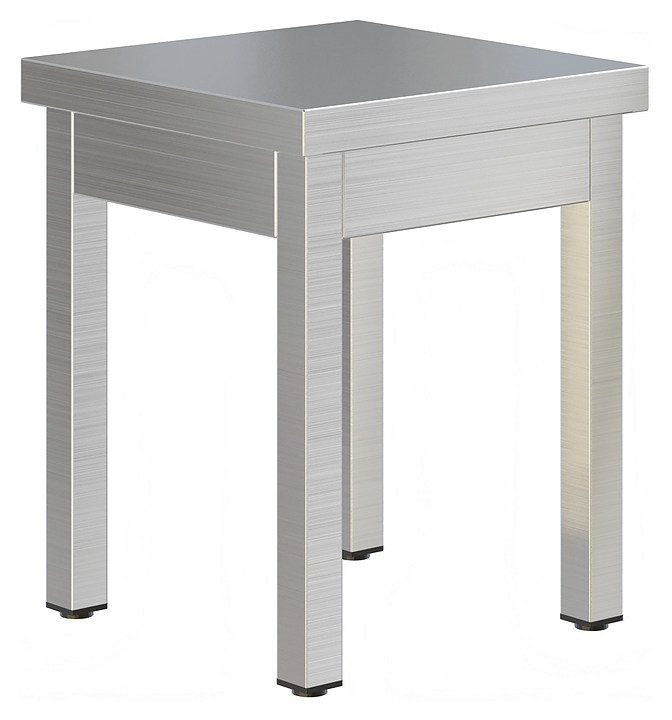 Подставка Restoinox ПО-10/5/5 предназначена для размещения различного оборудования и инвентаря на предприятиях общественного питания и торговли. Модель оснащена регулируемыми по высоте опорами. Ножки выполнены из квадратной трубы 40х40 мм из нержавеющей стали Aisi 430, столешница и ребро жесткости - из нержавеющей стали Aisi 430, подпятники опор - из прочного пластика. Особенности: