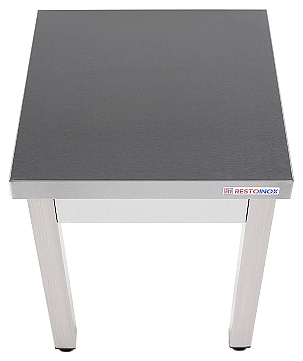 Подставка Restoinox ПО-6/5/5 предназначена для размещения различного оборудования и инвентаря на предприятиях общественного питания и торговли. Модель оснащена регулируемыми по высоте опорами. Ножки выполнены из квадратной трубы 40х40 мм из нержавеющей стали Aisi 430, столешница и ребро жесткости - из нержавеющей стали Aisi 430, подпятники опор - из прочного пластика. Особенности: