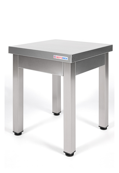 Подставка Restoinox ПО-7/6/5 предназначена для размещения различного оборудования и инвентаря на предприятиях общественного питания и торговли. Модель оснащена регулируемыми по высоте опорами. Ножки выполнены из квадратной трубы 40х40 мм из нержавеющей стали Aisi 430, столешница и ребро жесткости - из нержавеющей стали Aisi 430, подпятники опор - из прочного пластика. Особенности: