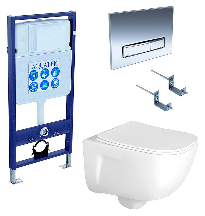 Унитаз подвесной с инсталляцией и сиденьем Aquatek SET ДИВА 4в1