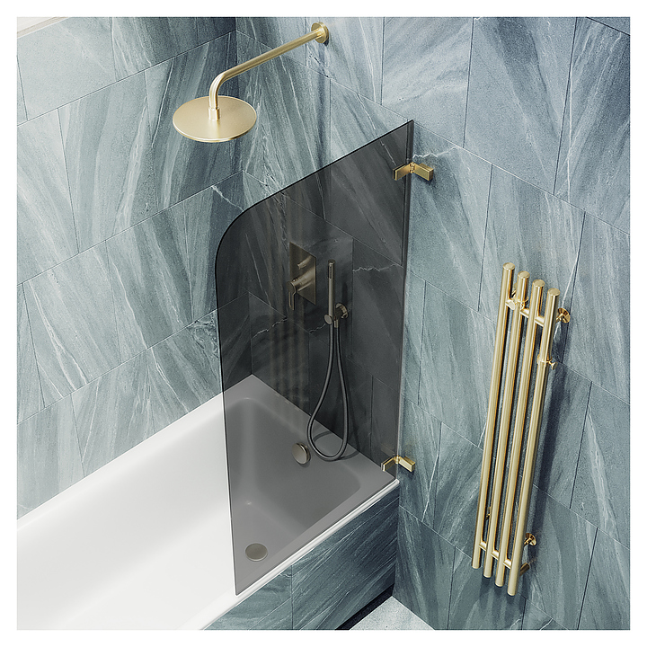 Шторка на ванну MaybahGlass MGV-654-3 70,5х140 см, поворотная, графит, золото