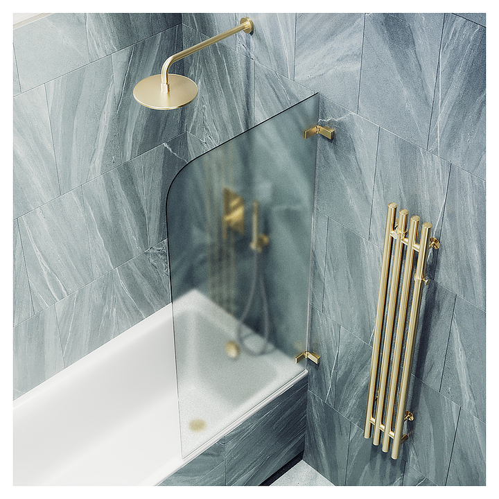 Шторка на ванну MaybahGlass MGV-655-3 70,5х140 см, поворотная, сатин, золото
