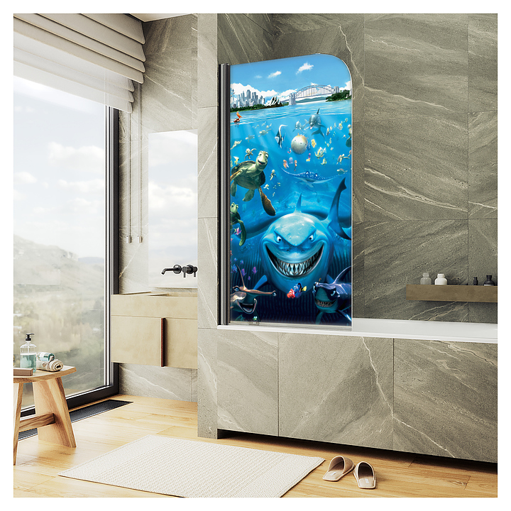Шторка на ванну с фотопечатью MaybahGlass ФП005-6 70х140 см, поворотная, на монопетле, черный