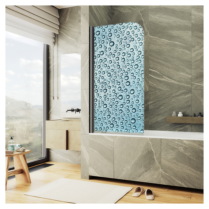 Шторка на ванну с фотопечатью MaybahGlass ФП011-6 70х140 см, поворотная, на монопетле, черный