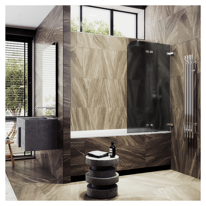 Шторка на ванну MaybahGlass MGV-577-4 51,5х140 см, 2 секции, складная, графит матовый, хром глянцевый