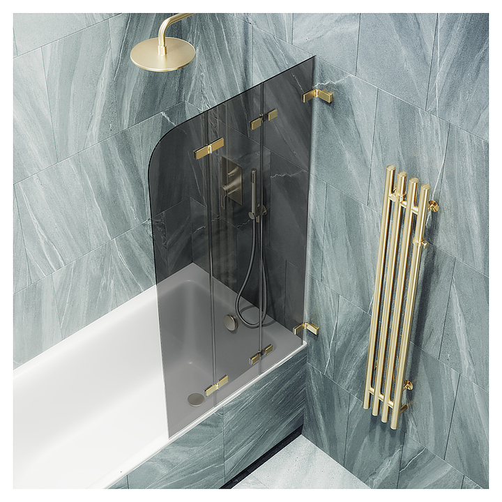 Шторка на ванну MaybahGlass MGV-583-3 75х140 см, 3 секции, складная, графит, золото