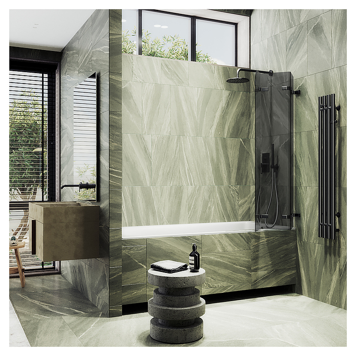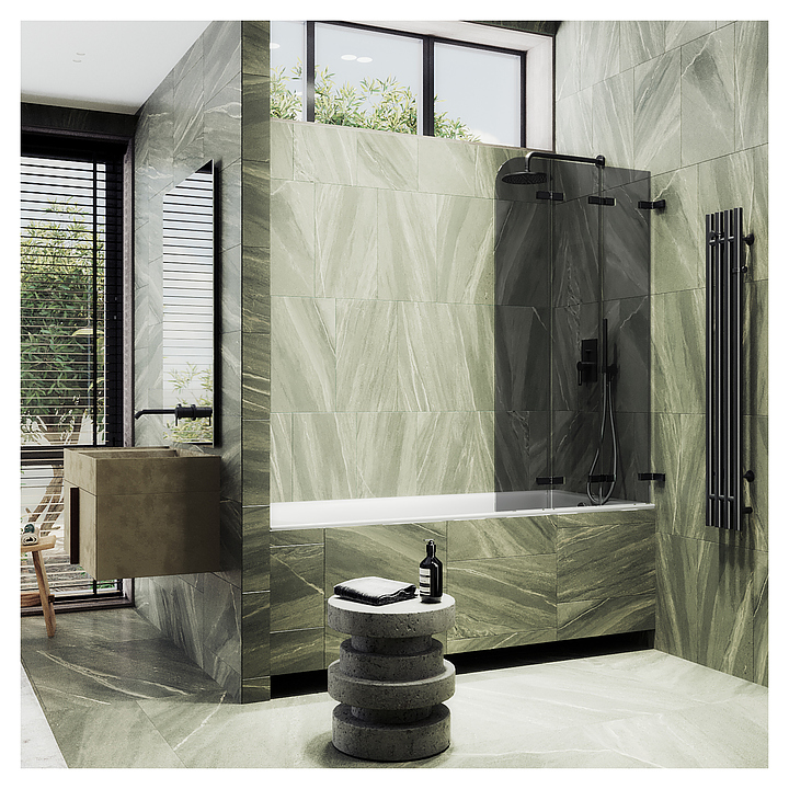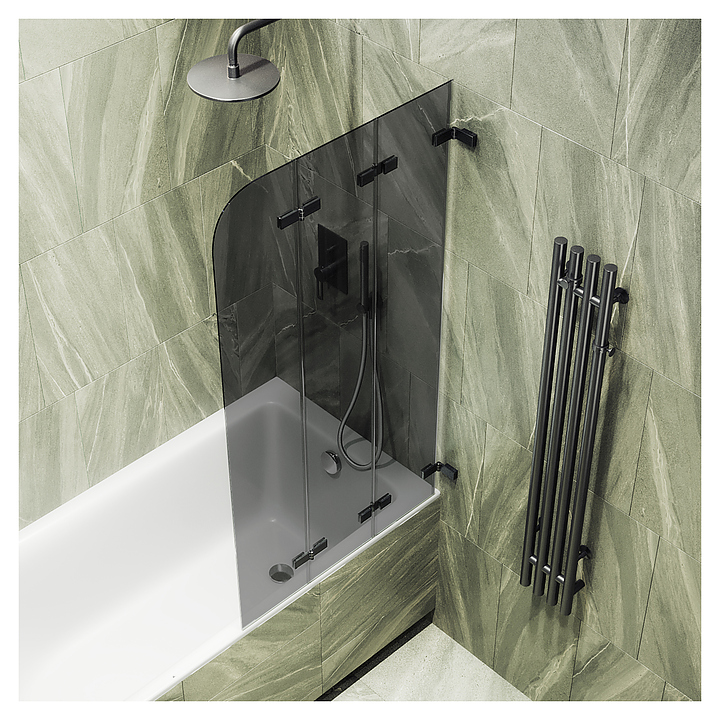 Шторка на ванну MaybahGlass MGV-583-6 75х140 см, 3 секции, складная, графит, черный