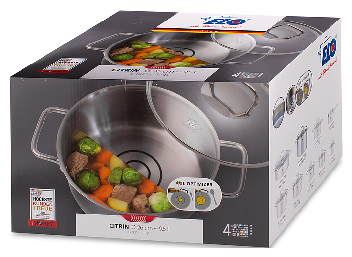 Кастрюля ELO Citrin 72446 используется на предприятиях общественного питания для приготовления продуктов. Модель оснащена энергосберегающим капсулированным дном. Изделие выполнено из нержавеющей стали 18/10, отличающейся прочностью, долговечностью и устойчивостью к появлению царапин, крышка - из жаропрочного стекла. Особенности: