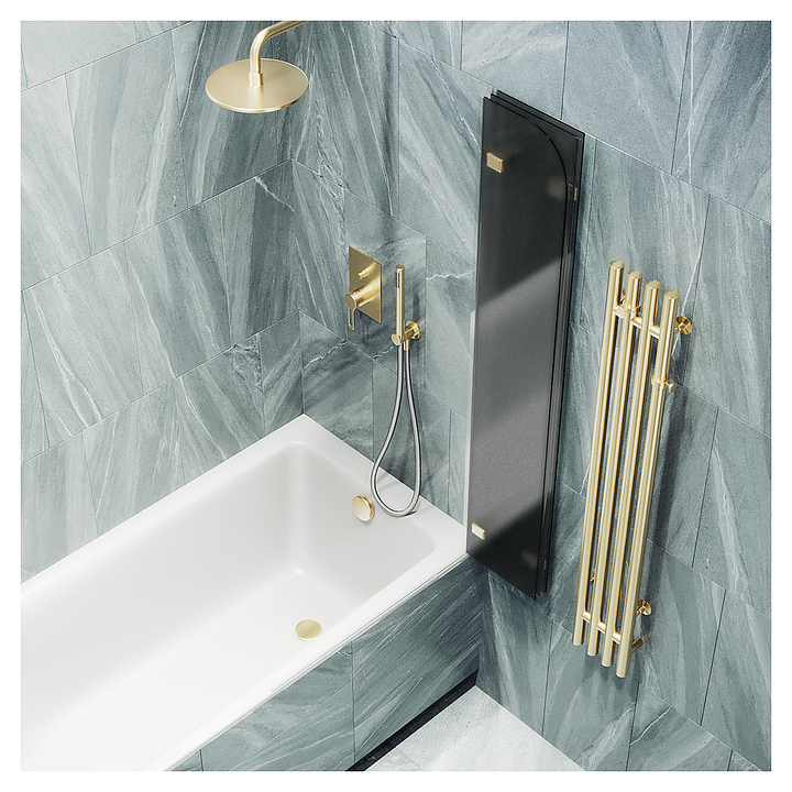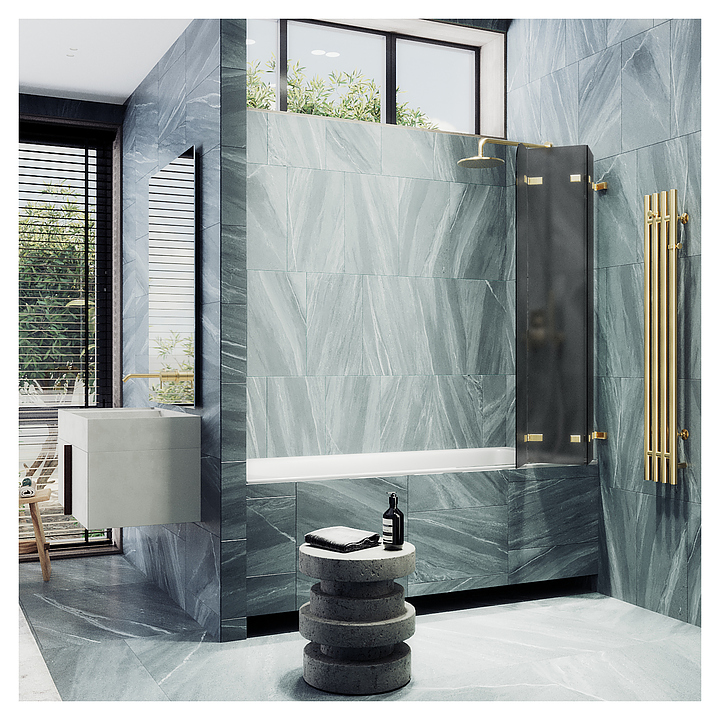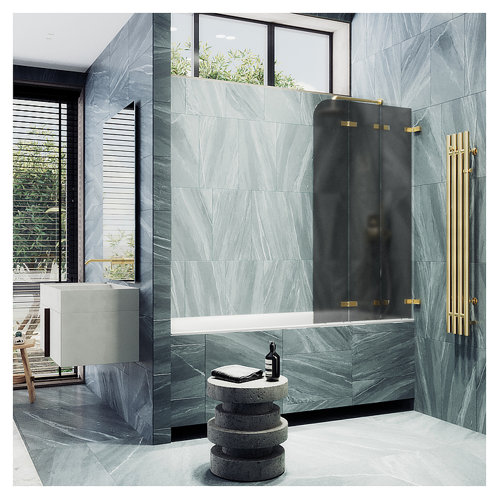 Шторка на ванну MaybahGlass MGV-582-3 75х140 см, 3 секции, складная, графит матовый, золото