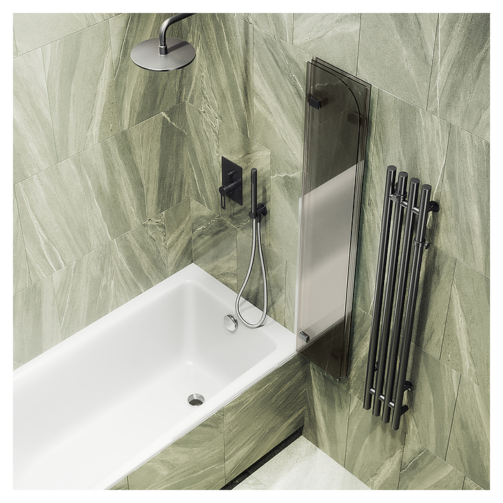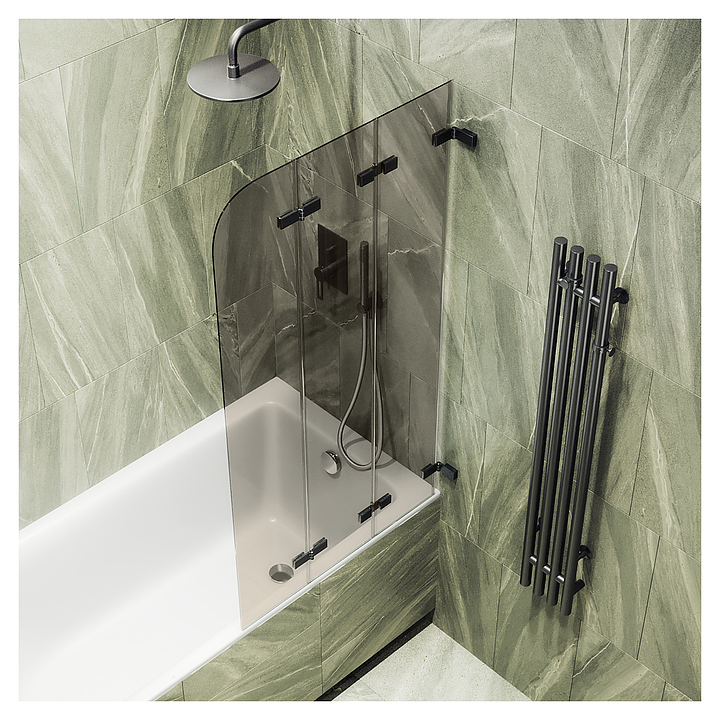 Шторка на ванну MaybahGlass MGV-580-6 75х140 см, 3 секции, складная, бронза, черный