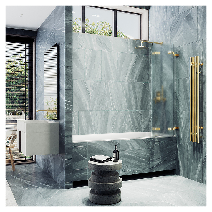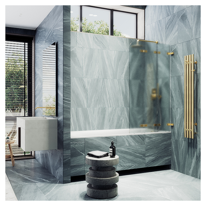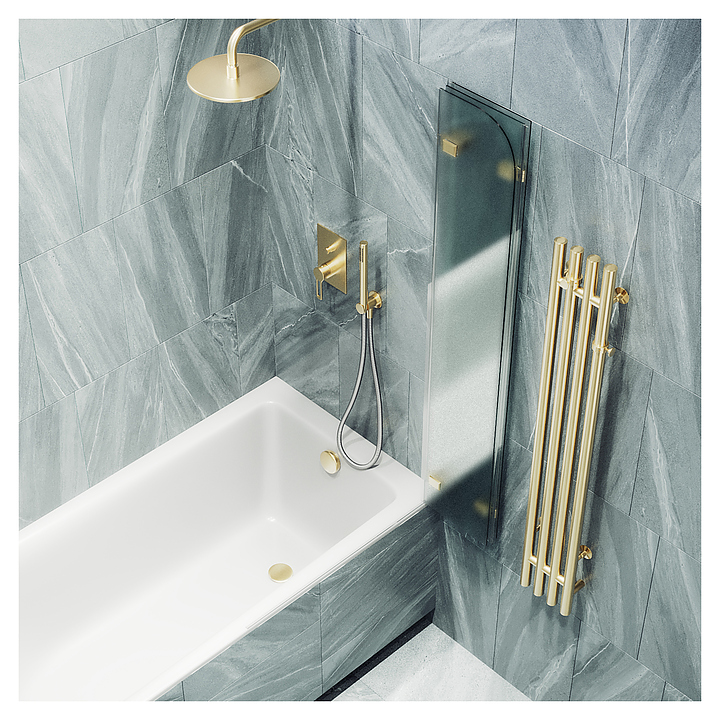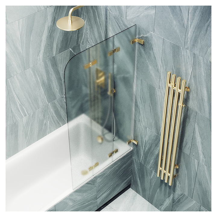 Шторка на ванну MaybahGlass MGV-581-3 75х140 см, 3 секции, складная, сатин, золото