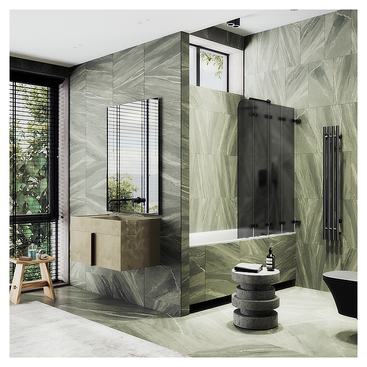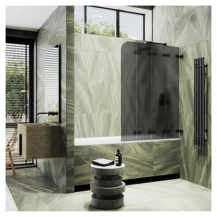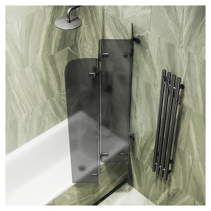 Шторка на ванну MaybahGlass MGV-589-6 98х140 см, 4 секции, складная, графит матовой, черный