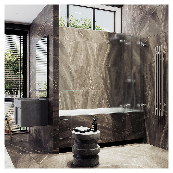 Шторка на ванну MaybahGlass MGV-587-4 98х140 см, 4 секции, складная, сатин, хром глянцевый