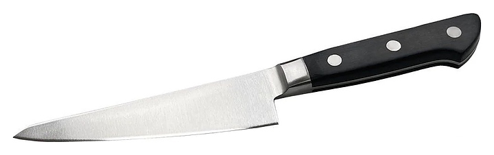 Обвалочный нож Fuji Cutlery FC-1042 серии Reigetsu используется на предприятиях общественного питания и в домашних условиях для отделения мясного филе от костей и шкурки. Модель оснащена однослойным лезвием, прямым обухом и острием с угловатым верхом. Изделие не рекомендуется мыть в посудомоечной машине. Клинок выполнен из высококачественной нержавеющей стали марки Mo-V с содержанием молибдена и ванадия, рукоятка – из полипропилена черного цвета. Особенности: