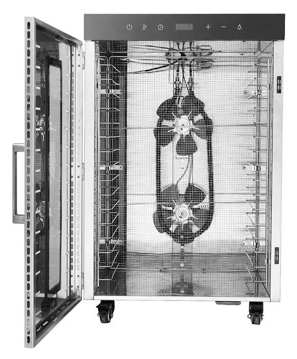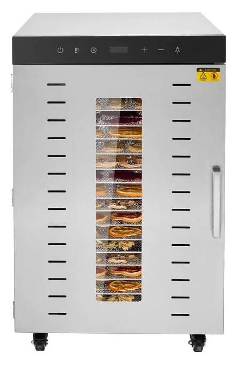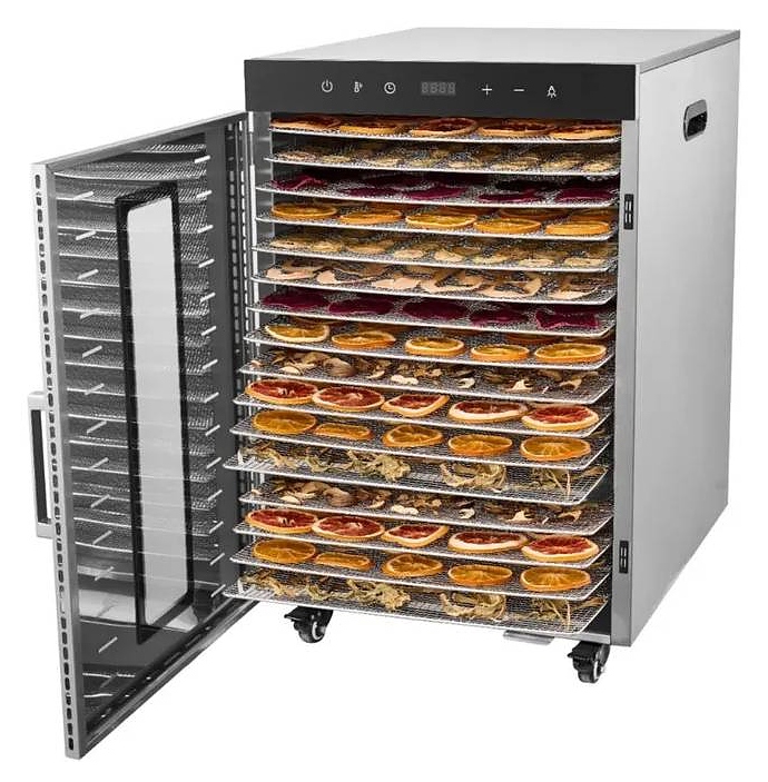 Дегидратор Airhot FD-16 используется на предприятиях общественного питания и торговли для сушки овощей, фруктов, ягод, грибов и трав. Модель оснащена камерой с вентилятором в задней стенке, распашной дверью и электронной панелью управления с функциональными клавишами и цифровым дисплеем. Корпус выполнен из нержавеющей стали. В комплект поставки входят 16 съемных решеток. Особенности: