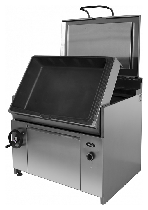 Опрокидывающаяся сковорода Grill Master Ф6ЖТЛСЖЭ предназначена для жарки, тушения, жарения во фритюре, пассирования и припускания различных продуктов на предприятиях общественного питания и торговли. Модель оснащена газовыми горелками специальной формы, закрытым стендом, системой электроподжига и газ-контроля. Корпус выполнен из нержавеющей стали, чаша - из чугуна. Особенности: