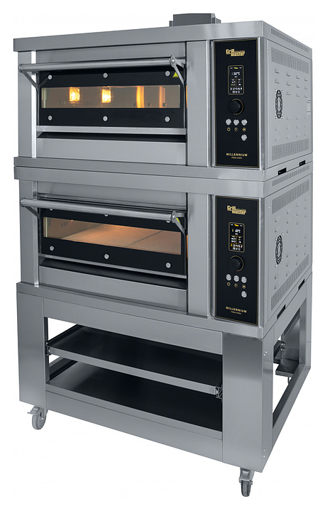 Печь Grill Master ППГ/2 используется на предприятиях общественного питания и торговли для приготовления пиццы. Модель оснащена электронной панелью с джойстиком, 8-мью газовыми горелками с системой электронного поджига и контроля пламени. Корпус, включая внешние и внутренние панели, выполнен из нержавеющей стали, под - из вулканического камня толщиной 20 мм, занимающего всю внутреннюю площадь печи, дверца - из закаленного ударопрочного стекла. Подставка в комплект поставки не входит. Особенности: