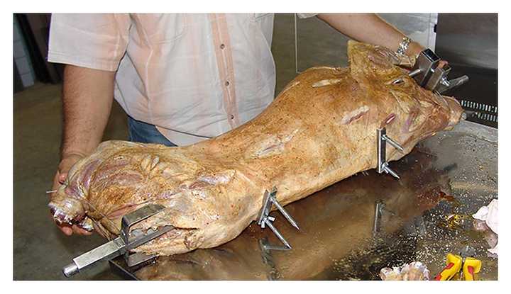 Электрический гриль Grill Master Ф6К2Э предназначен для приготовления баранов и кабанов на предприятиях общественного питания. Модель оснащена 2 рабочими камерами, 2 вертелами, подсветкой, распашными дверцами, 2 итальянскими мотор-редукторами, термостатом и таймером. Равномерное запекание обеспечивается благодаря непрерывному вращению туши непосредственно возле нагревателей. Изделие и вертелы-шампуры выполнены из пищевой нержавеющей стали, двери и задняя стенка - из термостойкого стекла. Дополнительные характеристики:
