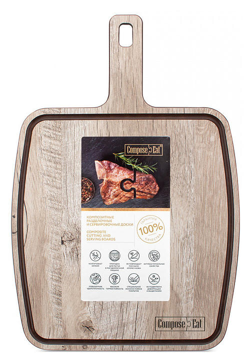 Разделочная доска ComposeEat Fashion DRRJ36250523LS6 из монолитного материала на основе многослойной крафтовой бумаги и имеет защитное гипоаллергенное покрытие с антибактериальными свойствами. Композитный материал сохраняет целостность при падении, ударах и механической нагрузке, устойчив к резким перепадам температур, не деформируется от влаги и не подвержен деформации, выцветанию, сколам, трещинам и механическим повреждениям. Модель оснащена желобом и ручкой. Особенности: