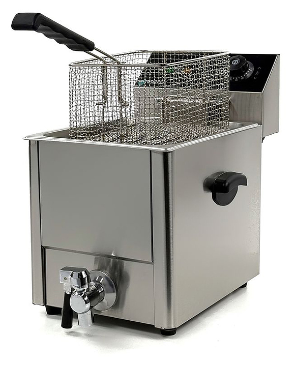 Фритюрница Hurakan HKN-FT8NM предназначена для приготовления широкого спектра блюд в большом объеме разогретого до определенной температуры масла или жира на предприятиях общественного питания и торговли. Модель оснащена электромеханической системой управления, регулировкой температуры и краном для слива масла. В комплект поставки входят корзина и крышка. Дополнительные характеристики: