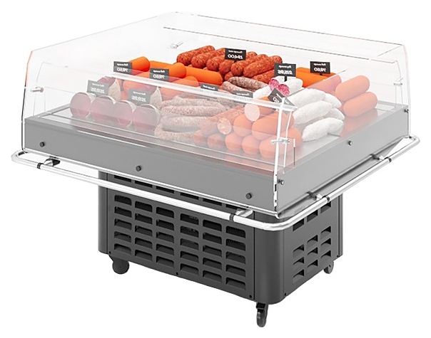 Среднетемпературная холодильная витрина Lida PROMO S-1 (1220х1140х953 мм) используется для кратковременного хранения и предпродажной демонстрации колбас, сыров, молочной продукции, кондитерских изделий и других гастрономических товаров при проведении промоакцияй и презентаций на предприятиях общественного питания и торговли. Модель прямоугольно ориентированной формы оснащена подставкой с втроенным холодильным агрегатом на базе компрессора Aspera и отбойником по периметру. Корпус подставки выполнен из оцинкованной стали с антикоррозийным покрытием порошковой эмалью, отбойник – из профиля трубы круглого сечения из нержавеющей стали, теплоизоляция – из пенополиуретана высокой плотности. Особенности: