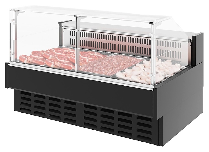 Холодильная витрина Lida K-1 SU (2000х1100х1250 мм) используется на предприятиях общественного питания и торговли для кратковременного хранения и предпродажной демонстрации мясной продукции и других гастрономических товаров. Модель оснащена подставкой с фронтальной термовыводящей решеткой и внешней полкой со стороны продавца. Корпус выполнен из оцинкованной стали с антикоррозийным покрытием порошковой эмалью, каркас – из профиля трубы квадратного сечения, внешняя полка, экспозиционная поверхность и ТЭНы оттайки – из нержавеющей стали, ночные шторки – из оргстекла на профиле, теплоизоляция – из пенополиуретана высокой плотности. Комплектация: