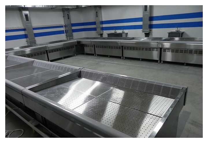 Холодильная витрина Lida Fish V1 (1200х1000х950 мм) используется на предприятиях общественного питания и торговли для кратковременного хранения и предпродажной демонстрации охлажденной рыбы и других морепродуктов на льду. Модель прямоугольно ориентированной формы оснащена фирменным испарителем и герметичной ванной. Корпус и ванна выполнены из высококачественной нержавеющей стали, устойчивой к соленой среде, теплоизоляция – из пенополиуретана высокой плотности. Комплектация: