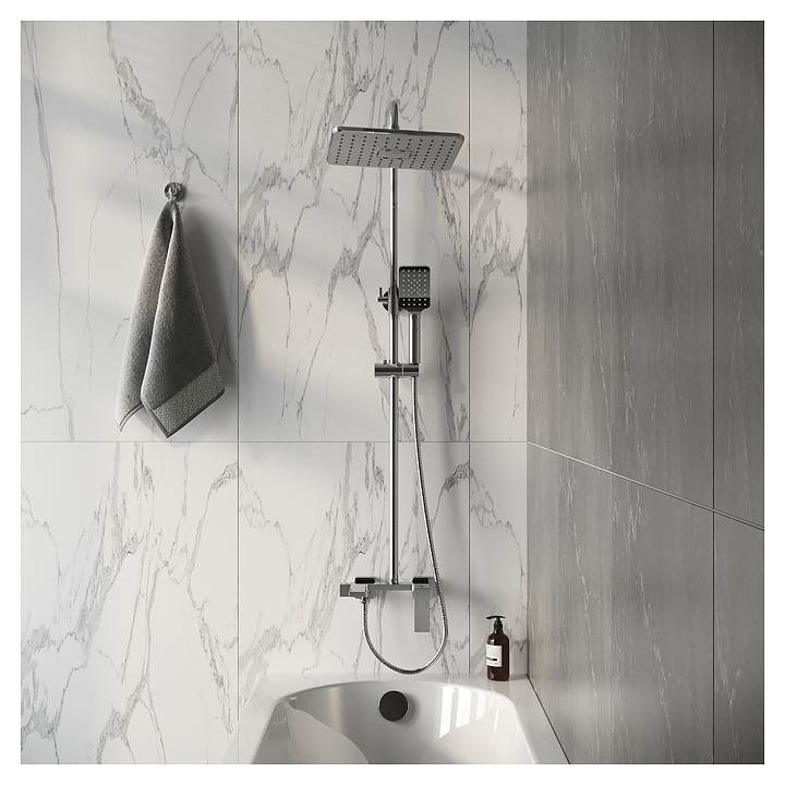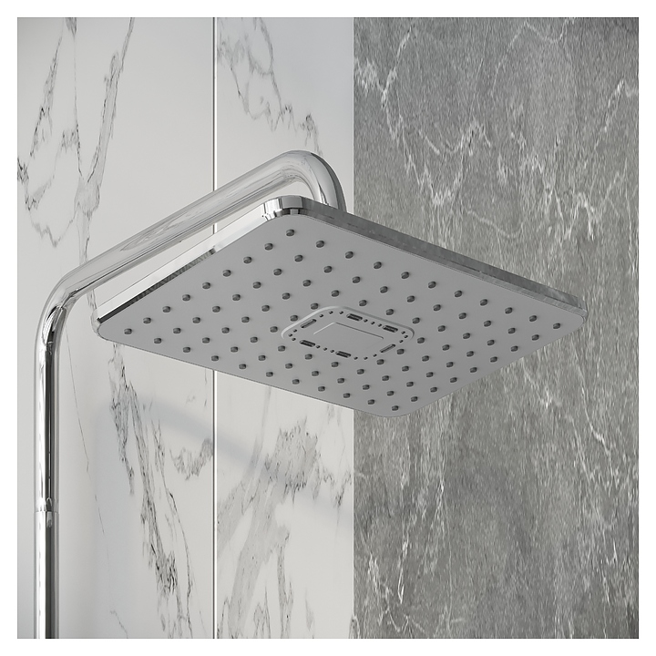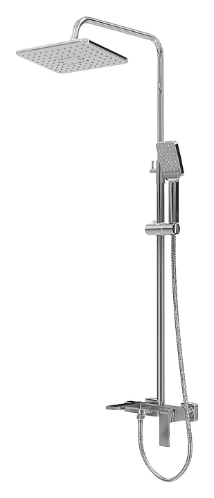 Душевая система Grossman Style 500.K35.05.100 предназначена для использования в ванных помещениях для подачи горячей и холодной воды. Модель оснащена поворотным изливом с дивертором для наполнения ванны, прямоугольным верхним тропическим душем с изменяемым углом, прямоугольным трехрежимным ручным душем, душевым шлангом в двойной оплетке с защитой от перекручивания и телескопической душевой стойкой. Изделие выполнено из латуни, отличающейся прочностью, долговечностью и устойчивостью к перепадам температур, верхний душ, стойка и шланг - из нержавеющей стали, ручкая лейка - из ABS-пластика. В комплект поставки входят крепления, эксцентрики, душевой шланг, душевая лейка, аэратор, вентиль, держатель для душа и переключатель потоков. Особенности: