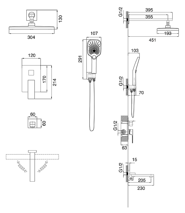 Встраиваемая душевая система Grossman Style 501.K35.05.320 предназначена для использования в ванных помещениях для подачи горячей и холодной воды. Модель оснащена складным поворотным изливом для наполнения ванны, прямоугольным верхним тропическим душем с изменяемым углом, прямоугольным трехрежимным ручным душем, душевым шлангом в двойной оплетке с защитой от перекручивания. Изделие выполнено из латуни, отличающейся прочностью, долговечностью и устойчивостью к перепадам температур, верхний душ, стойка и шланг - из нержавеющей стали, ручкая лейка - из ABS-пластика. В комплект поставки входят крепления, эксцентрики, душевой шланг, душевая лейка, аэратор, вентиль, держатель для душа и переключатель потоков. Особенности:
