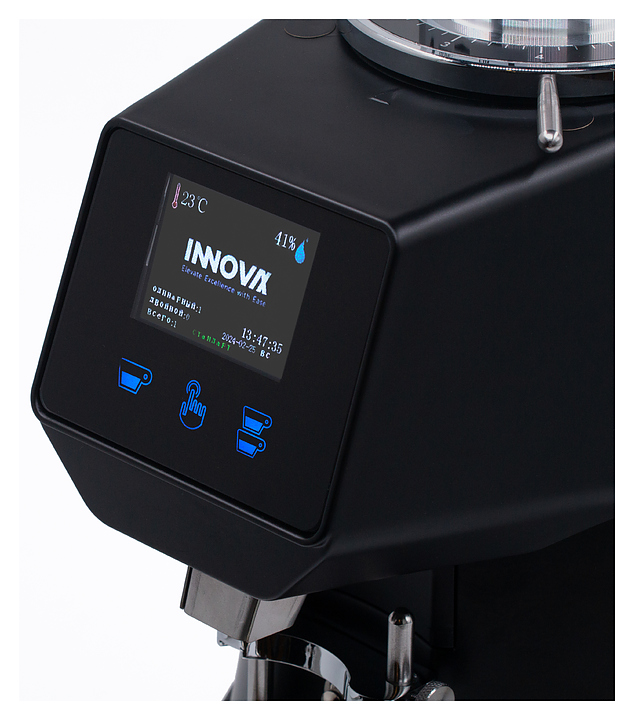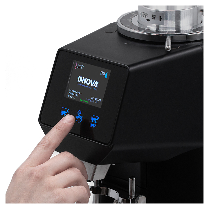 Кофемолка Innovix X64 предназначена для приготовления молотого кофе из зерен в барах и кофейнях. Модель оснащена сенсорным дисплеем, регулируемым держателем холдера и поддоном для капель. Корпус выполнен из металла, жернова - из высококачественной закаленной стали, устойчивой к коррозии и износу.
