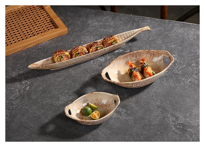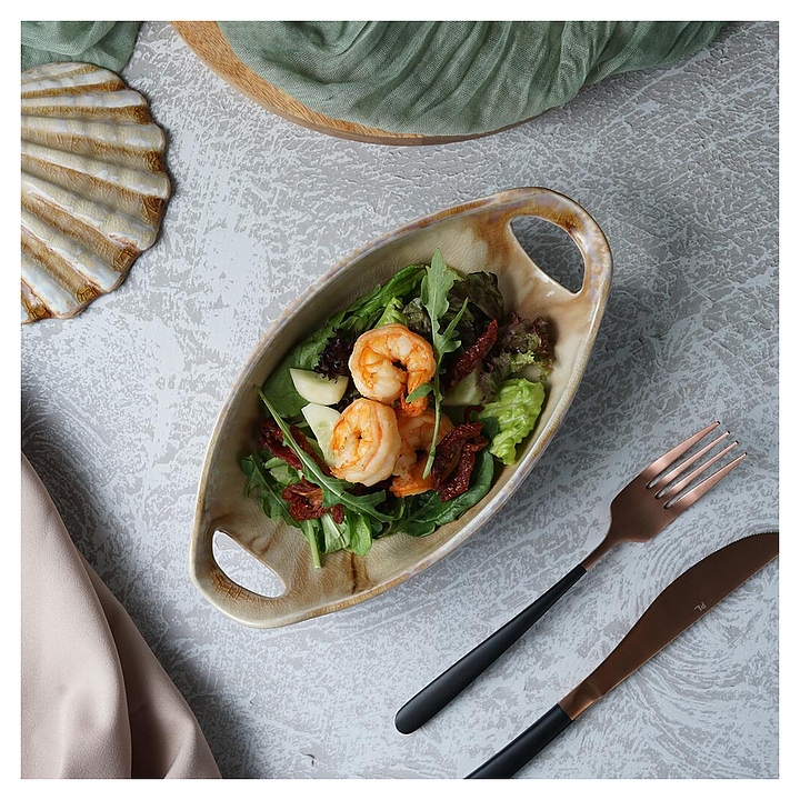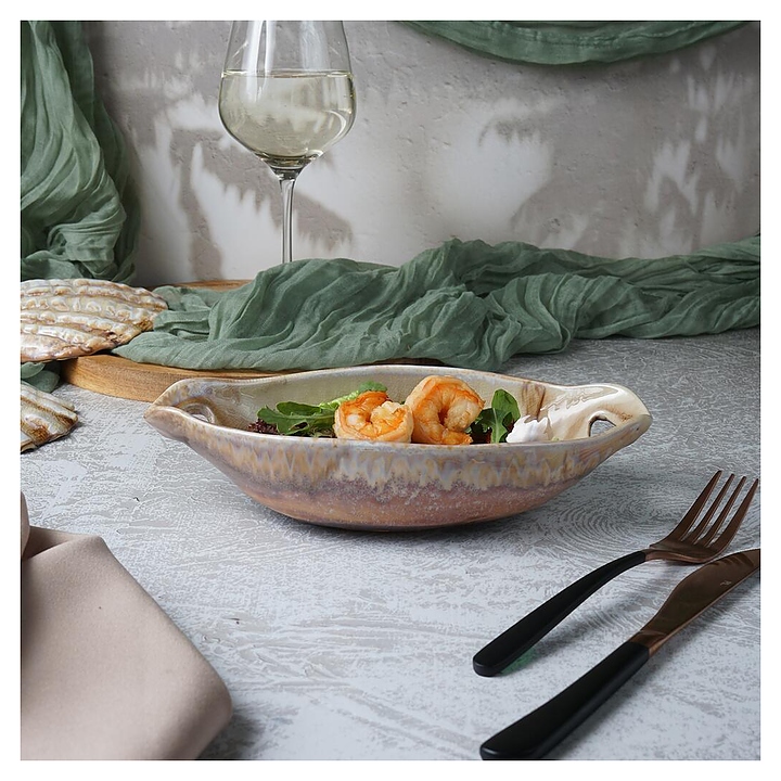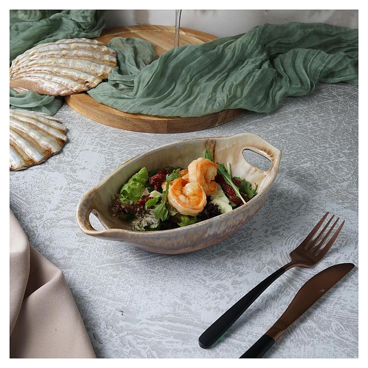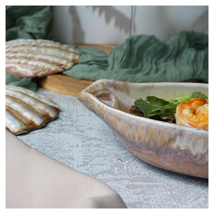Блюдо сервировочное P.L. Proff Cuisine Pearl Sea Stone Frutti di Mare QB23182002 210 мл 24х12,5 см h=5,5 см с ручками (керамика)