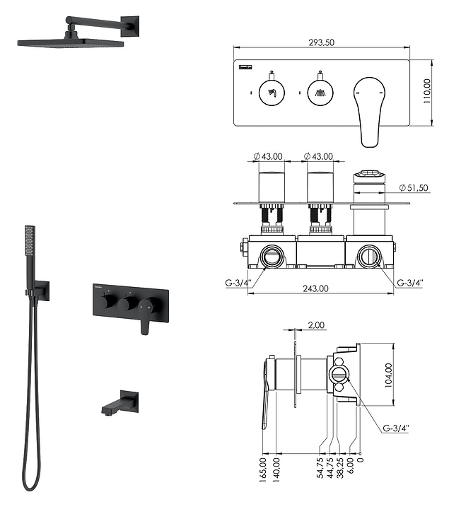 Душевая система встраиваемая Teska Euro X EX3760 с термостатом, хром