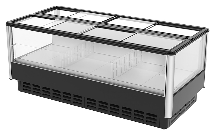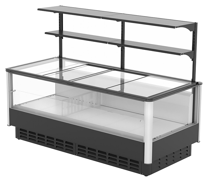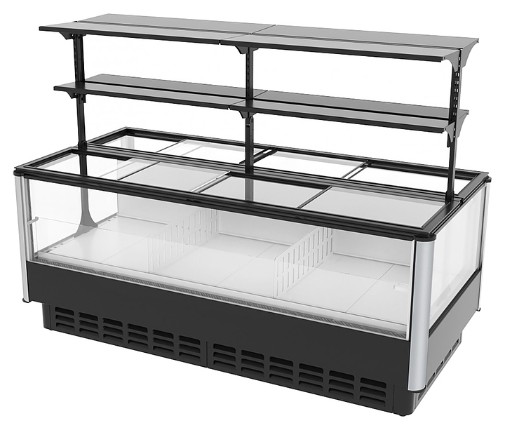 Морозильная бонета Lida Bonet-1 (2500х1190(970)х1000 мм) используется на предприятиях общественного питания и торговли для кратковременного хранения и предпродажной демонстрации замороженной продукции такой как рыба, полуфабрикаты, ягоды и мороженое. Модель оснащена подставкой с фронтальной термовыводящей решеткой и фирменным испарителем. Корпус выполнен из оцинкованной стали с антикоррозийным покрытием порошковой эмалью, ванна – из оцинкованной стали, ТЭНы оттайки – из нержавеющей стали, теплоизоляция – из пенополиуретана высокой плотности. Комплектация: