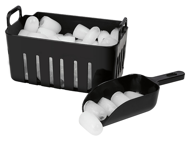Льдогенератор Clatronic EWB 3798 schwarz предназначен для производства кубикового льда, используемого для охлаждения напитков в офисах, кемпингах и домашних условиях. Модель оснащена компрессорной системой охлаждения, расположенной сверху рабочей камерой, откидной крышкой, сетчатым фильтром, отверстием лоя слива воды, кабелем питания с вилкой, панелью управления и контрольными индикаторами. Корпус, контейнер и совок выполнены из пластика с черной поверхностью. В комплект поставки входят перфорированный контейнер с ручками и совок для льда. Особенности: