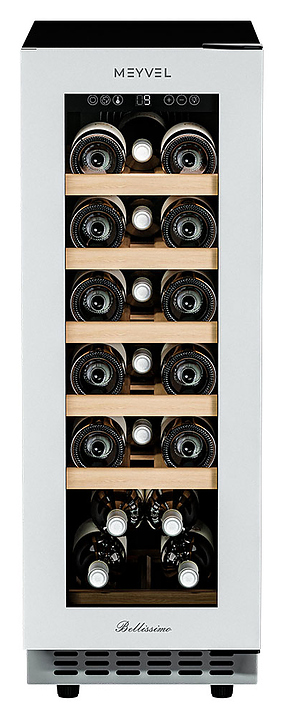 Винный шкаф MEYVEL MV19NH-KWT1 предназначен для демонстрации, хранения и создания оптимальных условий для сохранения всех вкусовых свойств вина в бутылках на предприятиях общественного питания, торговли, в барах, ресторанах, специализированных магазинах, частных домах или квартирах. Модель оснащена сенсорной панелью управления, электронным термостатом и внутренней светодиодной подсветкой. Корпус выполнен из окрашенной в черный цвет стали, дверь - из тройного стекла с УФ защитой с белой рамкой, полки - из массива бука. В комплект поставки входят петли для перенавешивания двери. Особенности: