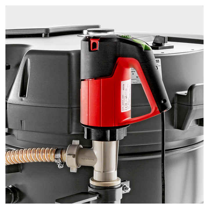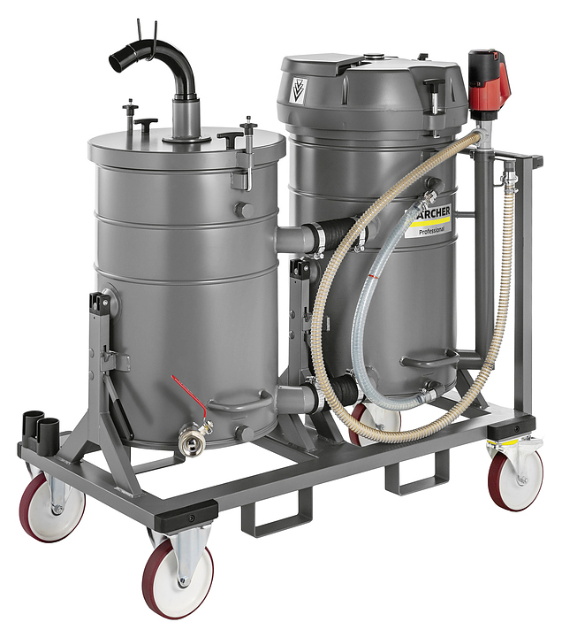 Промышленный пылесос Karcher IVR-L 200/24-2 ТС Dp предназначен для сбора больших объемов жидкостей (масел или охлаждающих эмульсий) и легкой металлической стружки на промышленных предприятиях. Модель оснащена 2 турбинами, которые могут включаться по отдельности, прочным моющимся карманным фильтром со сварными швами для пыли класса L и дополнительной сетчатой корзиной для разделения твердых и жидких всасываемых сред. Особенности: