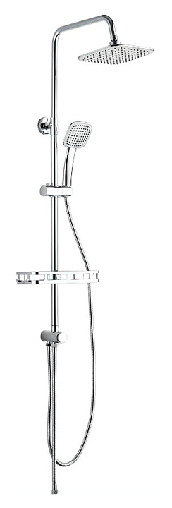 Душевая стойка VODA VST1000-8 предназначена для подачи горячей и холодной воды в ванных помещениях. Модель оснащена полкой для размещения аксессуаров, квадратными верхним душем и ручной лейкой. Изделие выполнено из нержавеющей стали, шланг для подключения к смесителю - из металла. В комплект поставки входят душевой шланг, шланг для подключения к смесителю, монтажный набор и полка. Особенности: