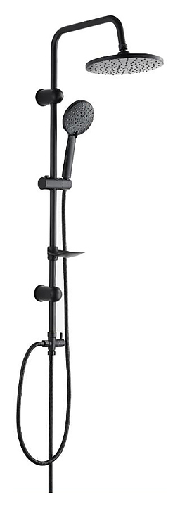 Душевая стойка VODA VST612Black предназначена для подачи горячей и холодной воды в ванных помещениях. Модель оснащена мыльницей, круглыми верхним душем и ручной лейкой. Форсунки Self-Clean Device и Eco system гарантируют простой уход. Шланг для подключения к смесителю и душевой изготовлены из металла с двойной сцепкой, мыльница - из прочного ABS-пластика, переключатель между лейками - из латуни. В комплект поставки входят крепления для установки штанги. Особенности: