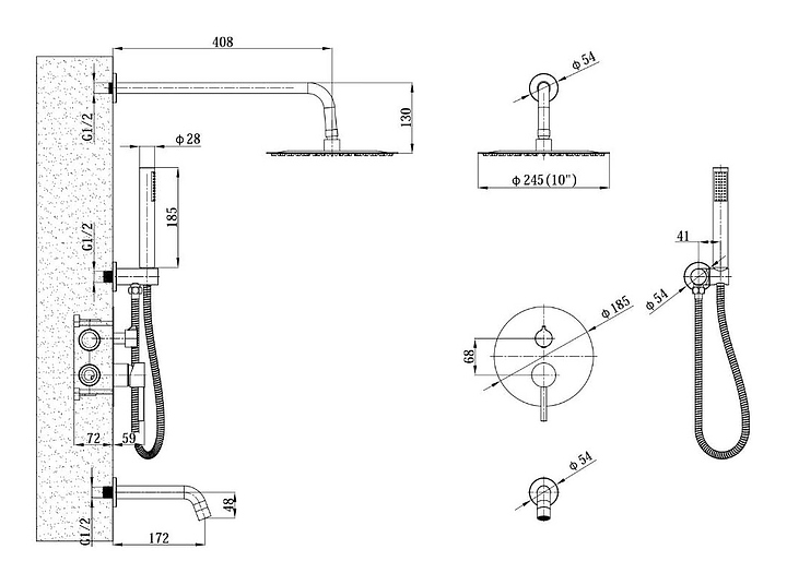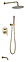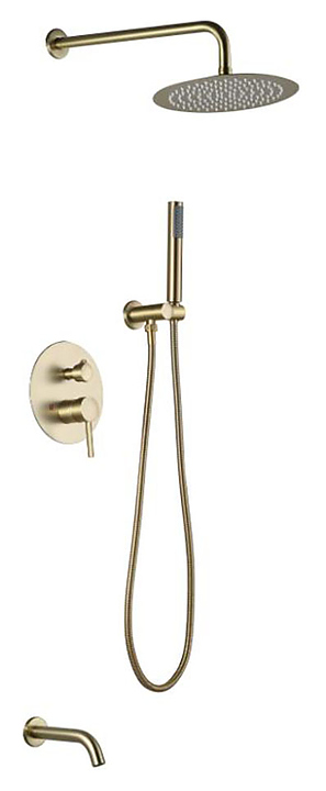 Душевой комплект ESKO Set_7in1 Gold используется в ванных комнатах. Модель оснащена круглым верхним душем и цилиндрической ручной лейкой. Керамический картридж обеспечивает плавный ход рычага смесителя, контроль и точность при выборе напора и температуры воды. Изделие выполнено из высококачественной латуни, которая отличается долговечностью и устойчивостью к перепадам температур, верхний душ - из прочного ABS-пластика, держатель верхнего душа - из нержавеющей стали, душевой шланг - из армированного ПВХ. В комплект поставки входят смеситель для душа, верхний душ, ручной душ, шланг для ручного душа, набор для подключения и настенный держатель. Особенности:
