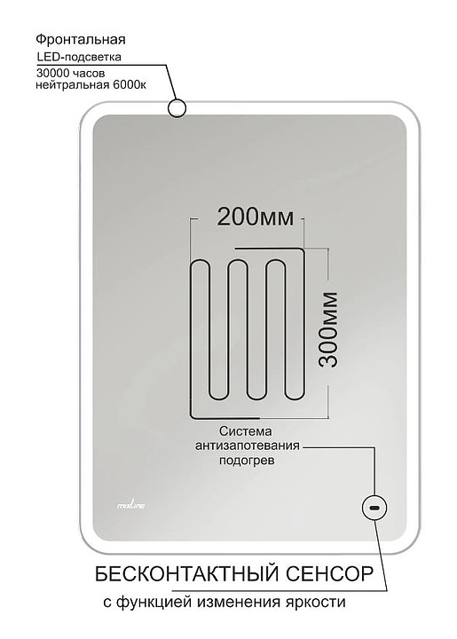 Зеркало Mixline Турин-2 50х70 см, с подогревом