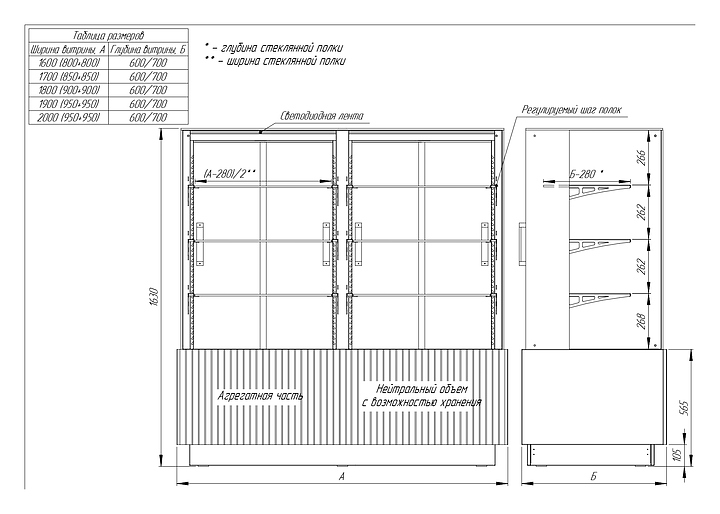 Витрина кондитерская Finist AIR DOUBLE LUX ADL-160-7-163