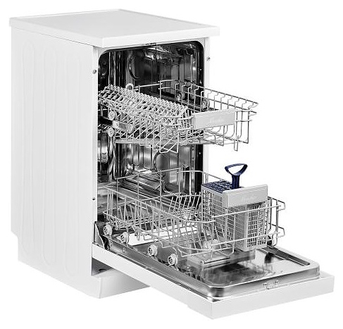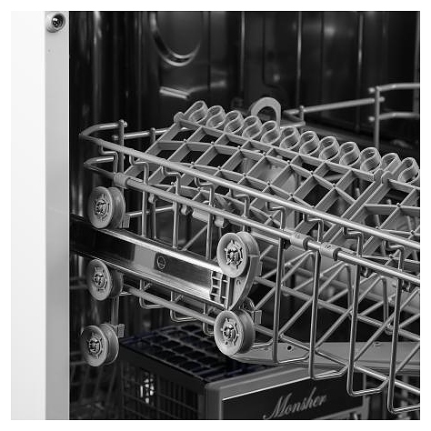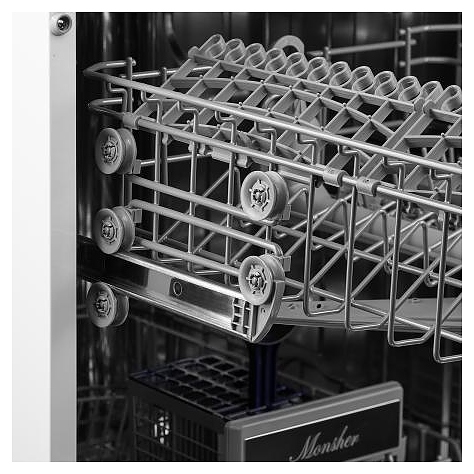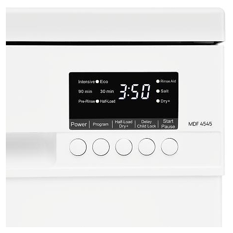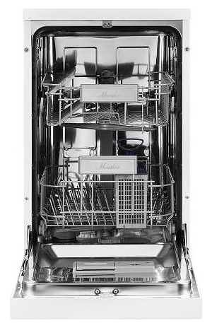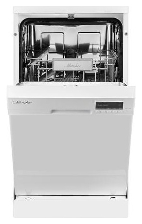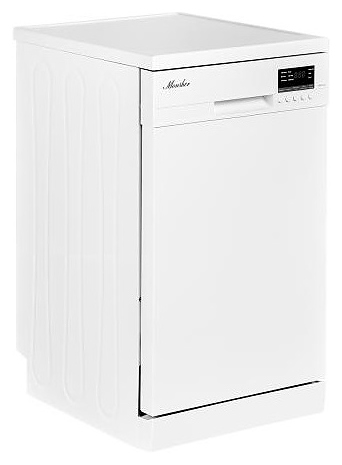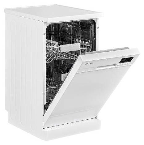 Посудомоечная машина Monsher MDF 4545предназначена для гигиенической обработки и последующей сушки различной посуды в домашних условиях. Модель оснащена камерой с откидной дверью с интегрированной рукояткой, верхним и нижним моечными рукавами, дозатором моющих и ополаскивающих средств, устройством умягчения воды, кабелем питания с вилкой, расположенной в верхней части фронта кнопочной панелью управления с сигнальными лампами и цифровым дисплеем с белой подсветкой индикации. Внутренняя облицовка камеры выполнена из высококачественной нержавеющей стали, внешняя облицовка корпуса белого цвета, панель управления черного цвета.