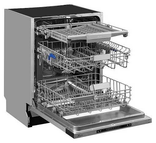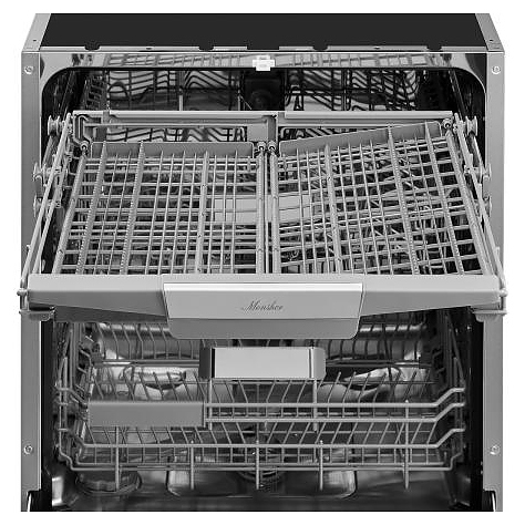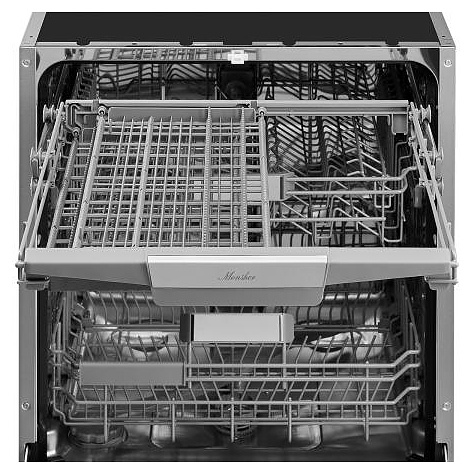 Посудомоечная машина Monsher MD 6015 предназначена для гигиенической обработки и последующей сушки различной посуды в домашних условиях. Модель оснащена камерой с откидной дверью с интегрированной рукояткой, 3 моечными рукавами, дозатором моющих и ополаскивающих средств, устройством умягчения воды, кабелем питания с вилкой, расположенной на верхнем торце двери кнопочной панелью управления с сигнальными лампами и 2 цифровыми дисплеями с белой подсветкой индикации. Внутренняя облицовка камеры выполнена из высококачественной нержавеющей стали, внешняя облицовка фронта серебристого оттенка, цоколь и верхняя часть двери черного цвета.