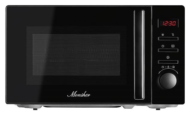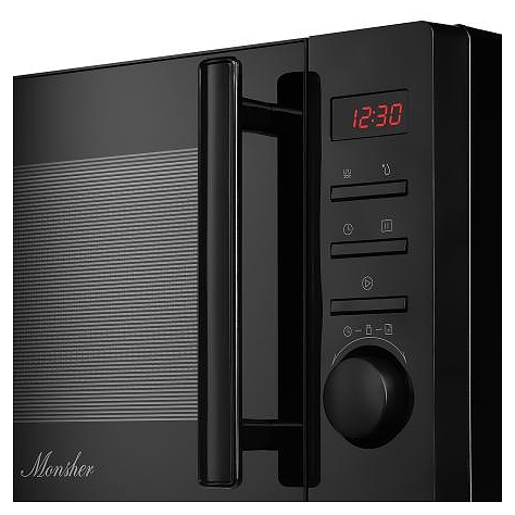 Микроволновая печь Monsher MTW 203 Noir предназначена для приготовления пищи, подогрева готовых блюд и ингридиентов, а также размораживания полуфабрикатов в гостиницах, офисах и домашних условиях. Модель оснащена камерой с верхним грилем, левосторонней распашной дрерью со смотровым окном, вертикальной рукояткой, кабелем питания с вилкой, расположенной с правой стороны фронта электромеханической панелью управления с поворотным переключателем, функциональными кнопками и цифровым дисплеем с красной подсветкой индикации. Корпус выполнен из высококачественной стали с антикоррозийным покрытием черного цвета, дверь с полным фронтальным остеклением, поворотный стол – из ударопрочного стекла, фурнитура черного цвета. В комплект поставки входят поворотный стол, высокая решетка для гриля, инструкция по эксплуатации и гарантийный талон. Особенности: